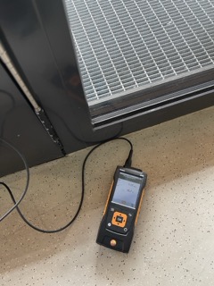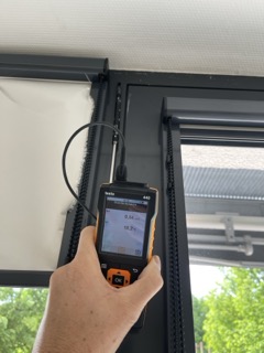 Holger dokumentierte diese Situation mit Thermografieaufnahmen und Anemometer (Luftgeschwindigkeitsmessgerät) und hat uns Fotos mitgebracht, diese sind auch in den zwei Videos zu sehen.